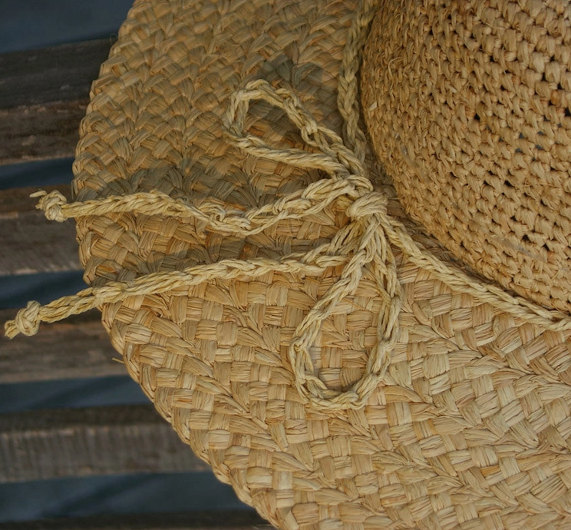 Raffia does not turn brittle and break when exposed to the sun. It isn’t stiff like some straw, and holds its shape better when crushed or flattened.
