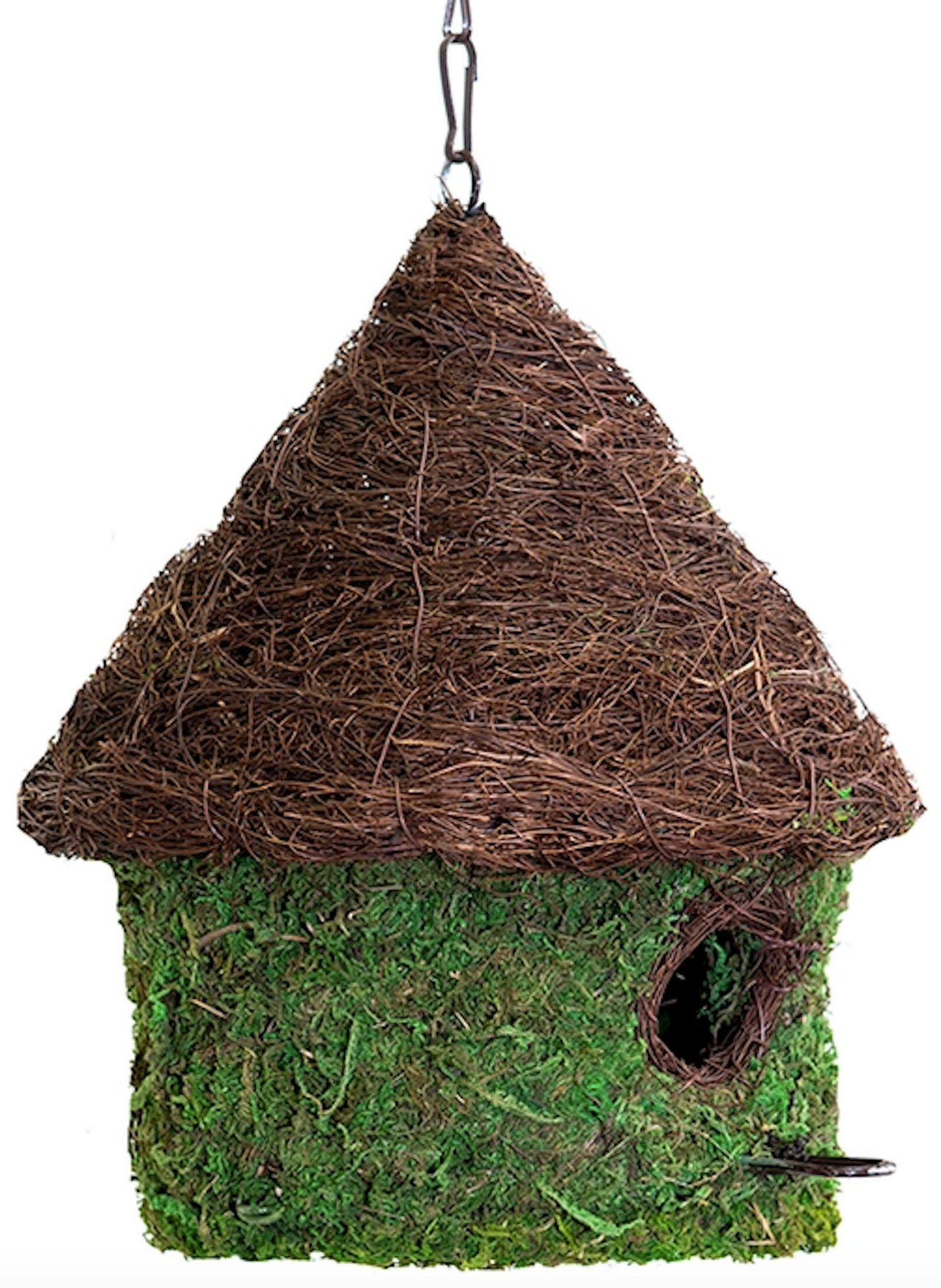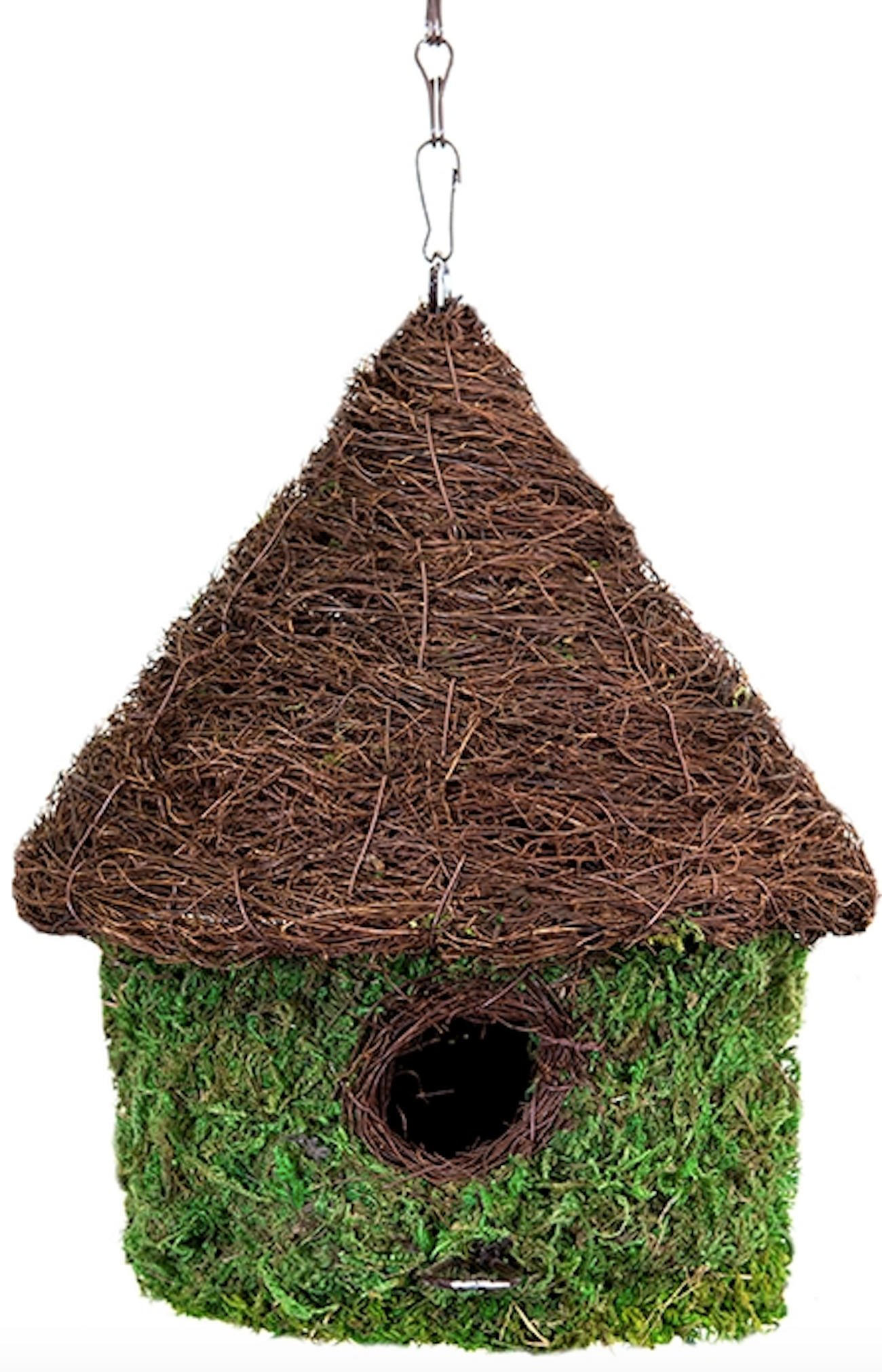 These charming Woven Birdhouses are made of natural, preserved moss and provide a friendly nesting spot for smaller birds. Designed for outdoor and garden use, they are extremely durable, maintain their shape, and will not deteriorate for multiple years. Each birdhouse comes with an elegant chain to hang from a tree branch or hook.
