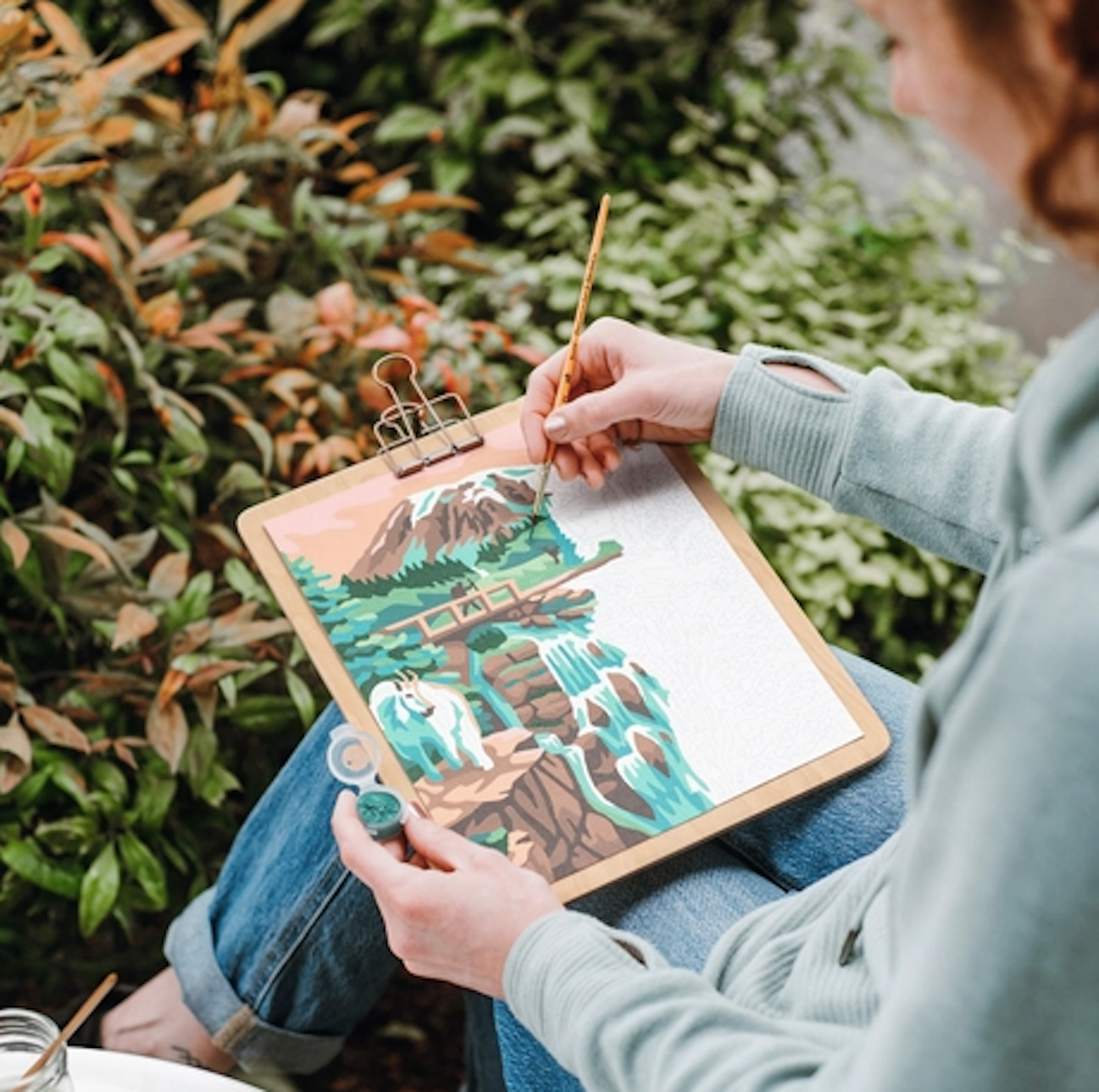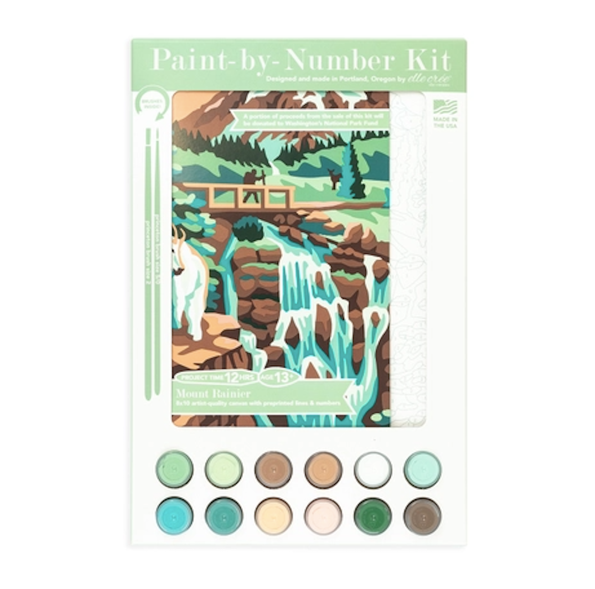 Eco-friendly Paint-By-Number Kit brings premium artist quality materials together in one thoughtful set. Responsibly and ethically sourced, each DIY paint kit is designed with sustainability in mind. Packaging is plastic-free and recyclable. Illustrated by Rachel Austen and assembled in Portland, Oregon.
