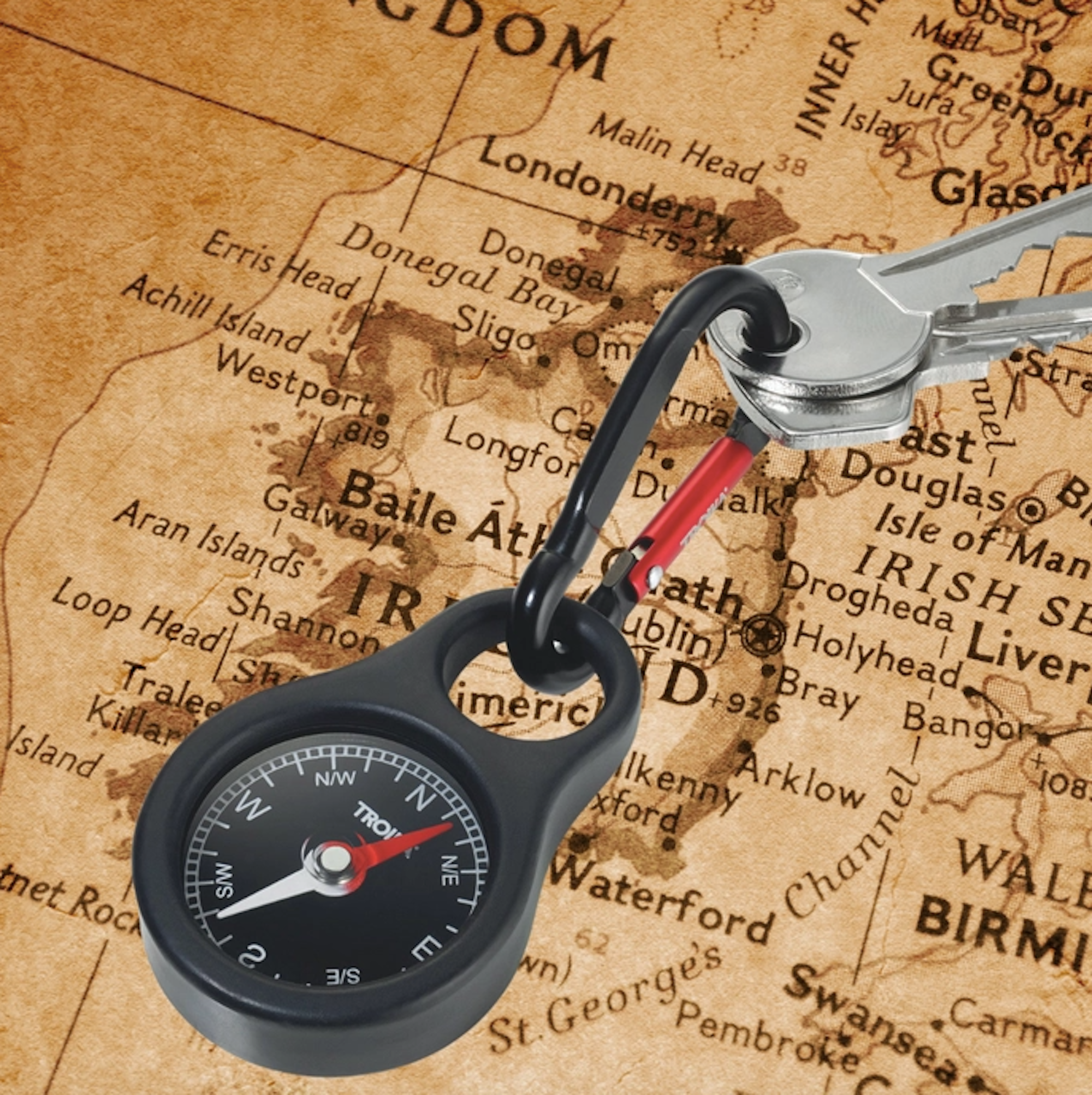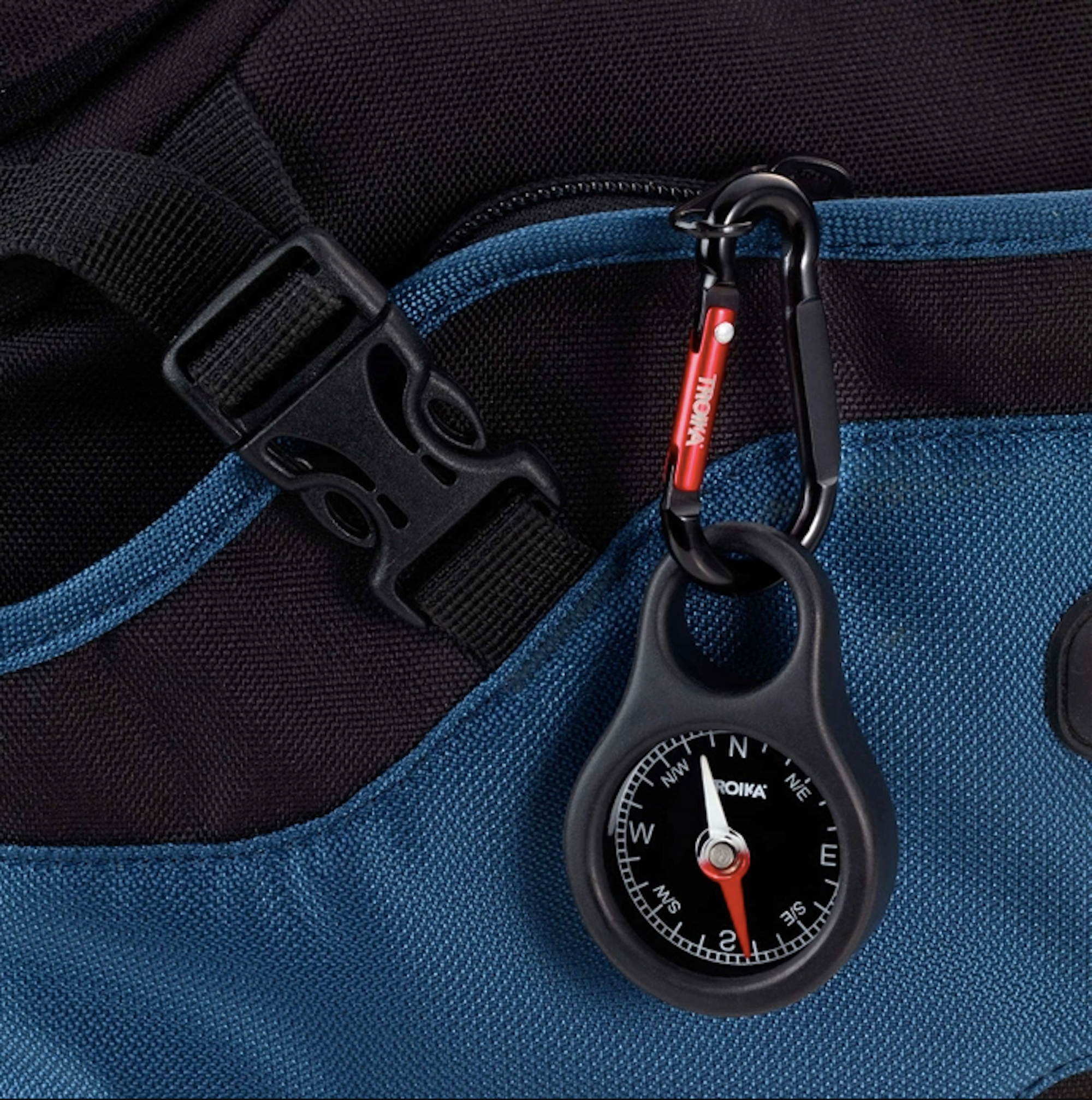 The Carabiner Keyring with Compass is a functional, reliable companion tool for urban or wilderness adventurers. The sleek pocket compass features an anti-slip soft grip cover and clear display for easy navigation and orientation. Strong aluminum carabiner keeps keys and other items secure.