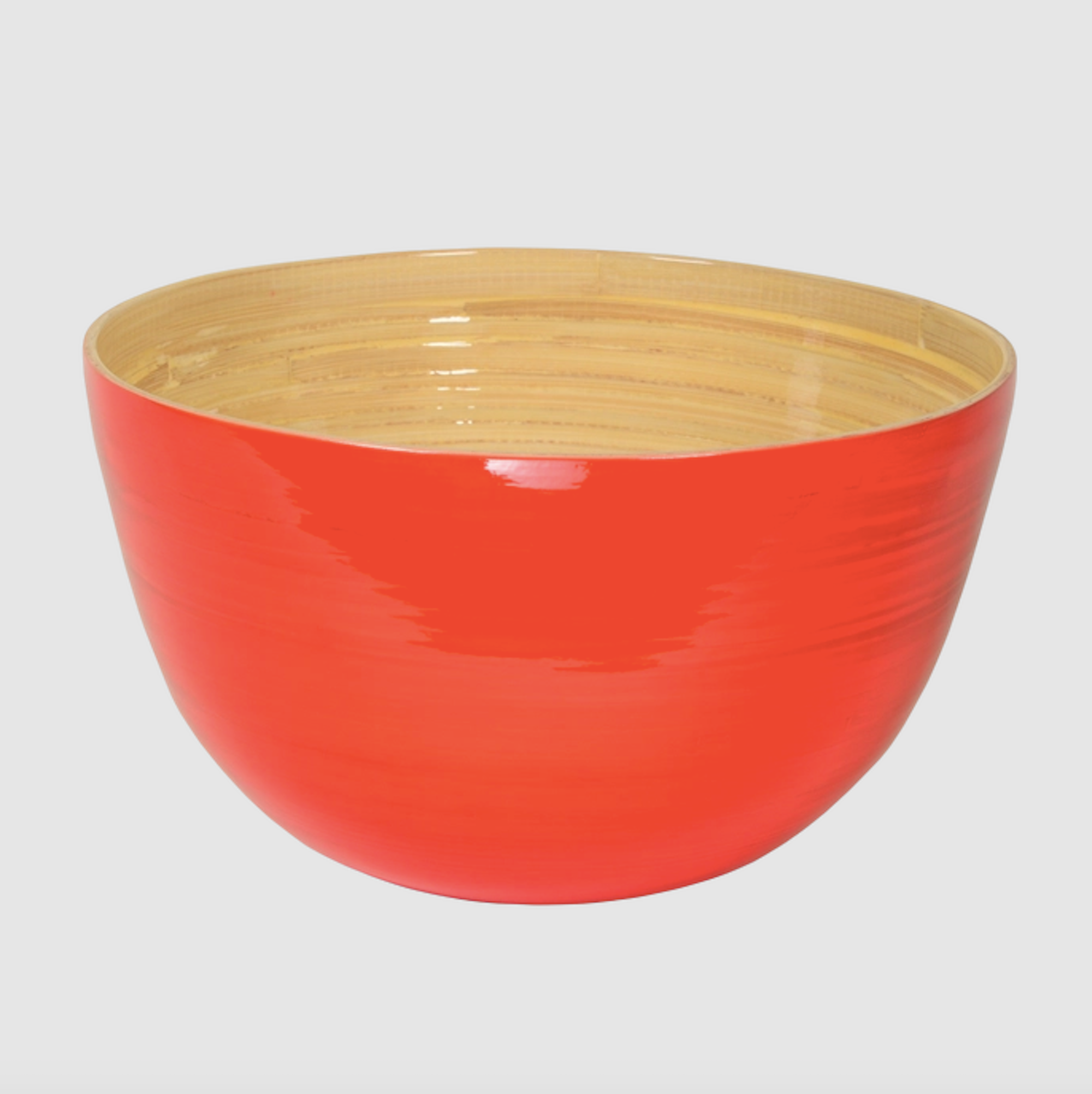 Beautiful and useful, this bamboo bowl is handcrafted in Vietnam using traditional techniques. The bold, clear colors are enhanced with a high-gloss lacquer finish, allowing the beauty of the bamboo to come through.